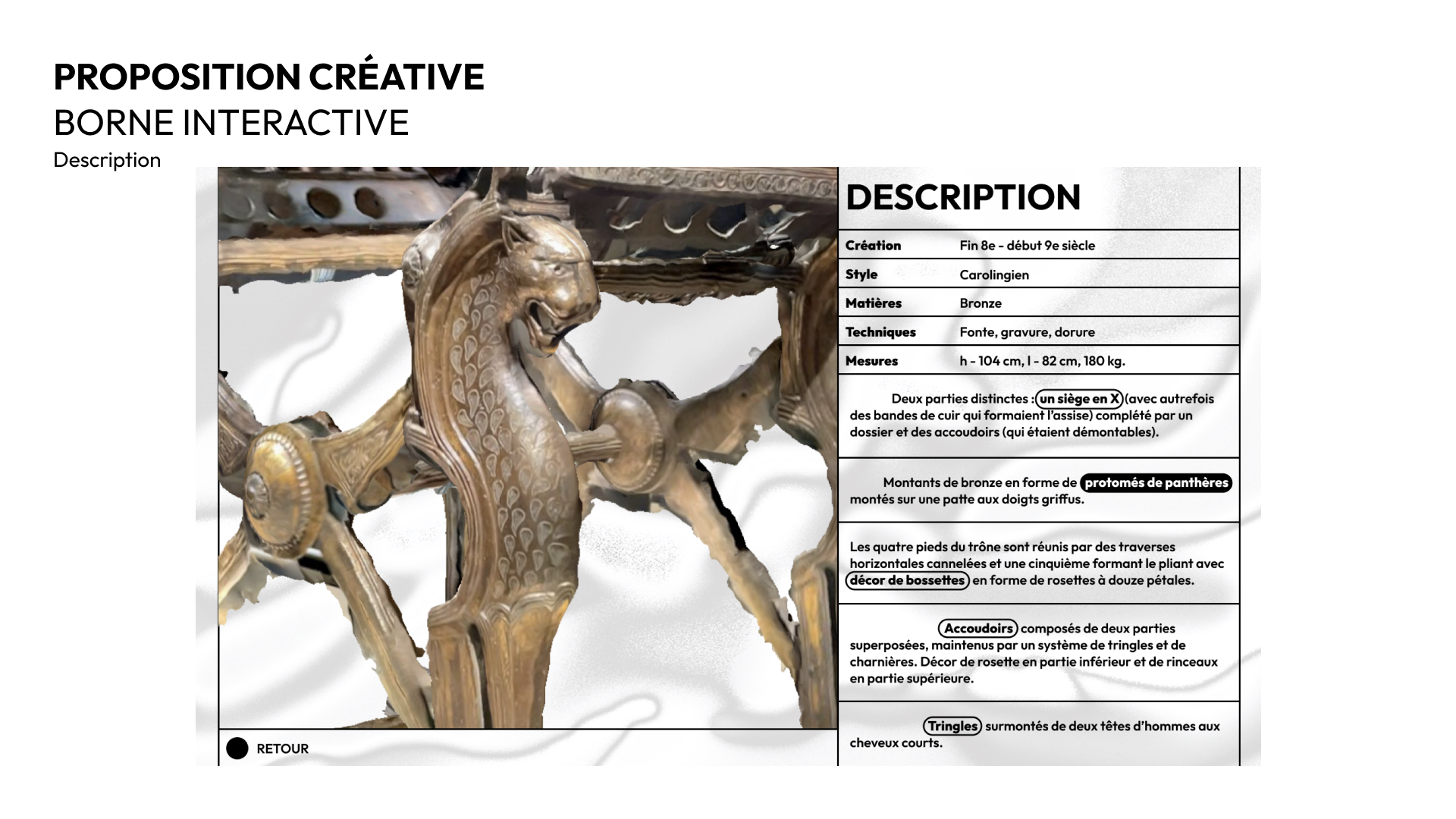fr. Conception d'un panneau interactif à installer devant le trône de Dagobert à Paris.